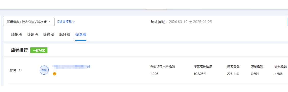 慢慢的,效果就出来了: 以前他是一周都很难有1-2个询盘,现在是一天就有1-2个询盘,店铺询盘量直接攀升到行业第13名!